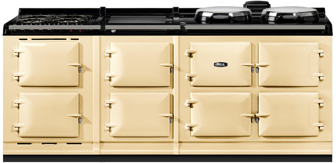 The AGA R7 210 features three ovens for roasting, baking and simmering and offers two hotplates which can be switched on and off independently of the ovens, and each other, and heat up in 10 to 12 minutes.This model offers an additional AGA module and hot cupboard, providing an additional integral grill, fan oven, warming oven and two slow cooking ovens. This model also features a 4-burner gas hob and the choice of either a single-zone induction hob or a warming plate.The cast-iron ovens also feature an Altrashell™ coating, which seals the cast-iron and makes them easier to clean. For further ease, the inner door liners can be removed and placed in a dishwasher.