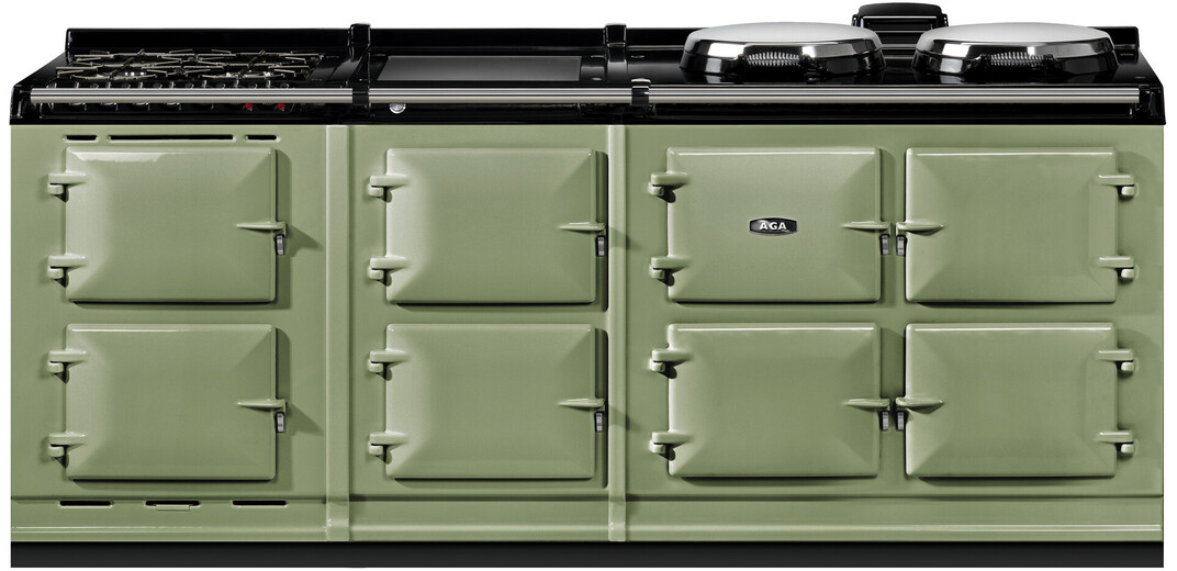 The AGA R7 210 features three ovens for roasting, baking and simmering and offers two hotplates which can be switched on and off independently of the ovens, and each other, and heat up in 10 to 12 minutes.This model offers an additional AGA module and hot cupboard, providing an additional integral grill, fan oven, warming oven and two slow cooking ovens. This model also features a 4-burner gas hob and the choice of either a single-zone induction hob or a warming plate.The cast-iron ovens also feature an Altrashell™ coating, which seals the cast-iron and makes them easier to clean. For further ease, the inner door liners can be removed and placed in a dishwasher.