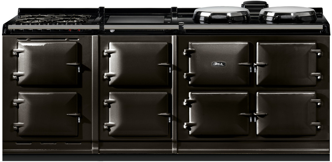 The AGA R7 210 features three ovens for roasting, baking and simmering and offers two hotplates which can be switched on and off independently of the ovens, and each other, and heat up in 10 to 12 minutes.This model offers an additional AGA module and hot cupboard, providing an additional integral grill, fan oven, warming oven and two slow cooking ovens. This model also features a 4-burner gas hob and the choice of either a single-zone induction hob or a warming plate.The cast-iron ovens also feature an Altrashell™ coating, which seals the cast-iron and makes them easier to clean. For further ease, the inner door liners can be removed and placed in a dishwasher.